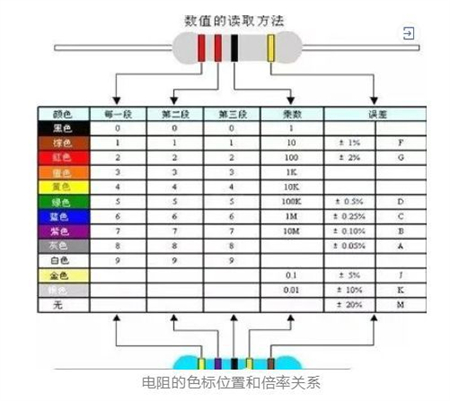 電阻的色標(biāo)位置和倍率關(guān)系如下表所示:
